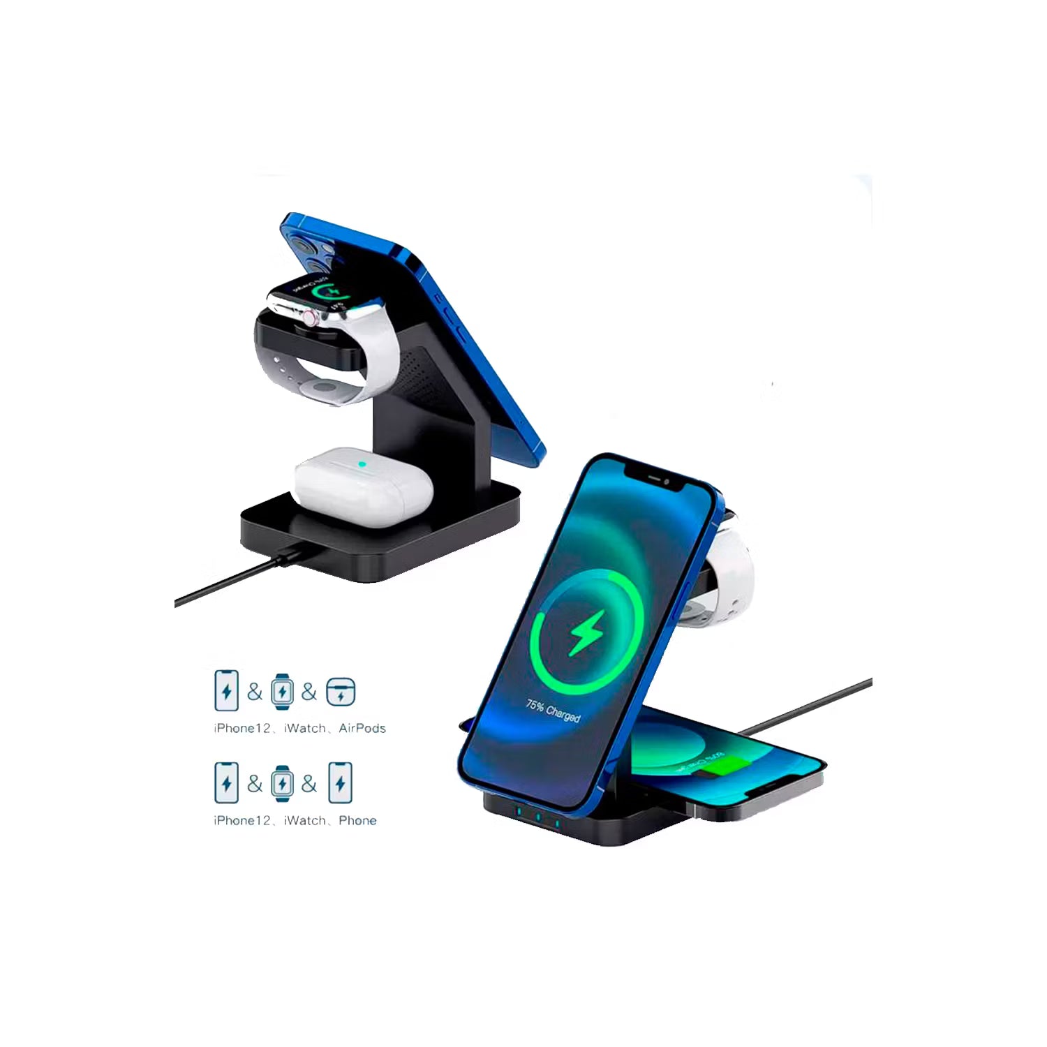 Base 3 en 1 Carga Rapida Inalámbrico y Magnetica Compatible con Iphone y Android