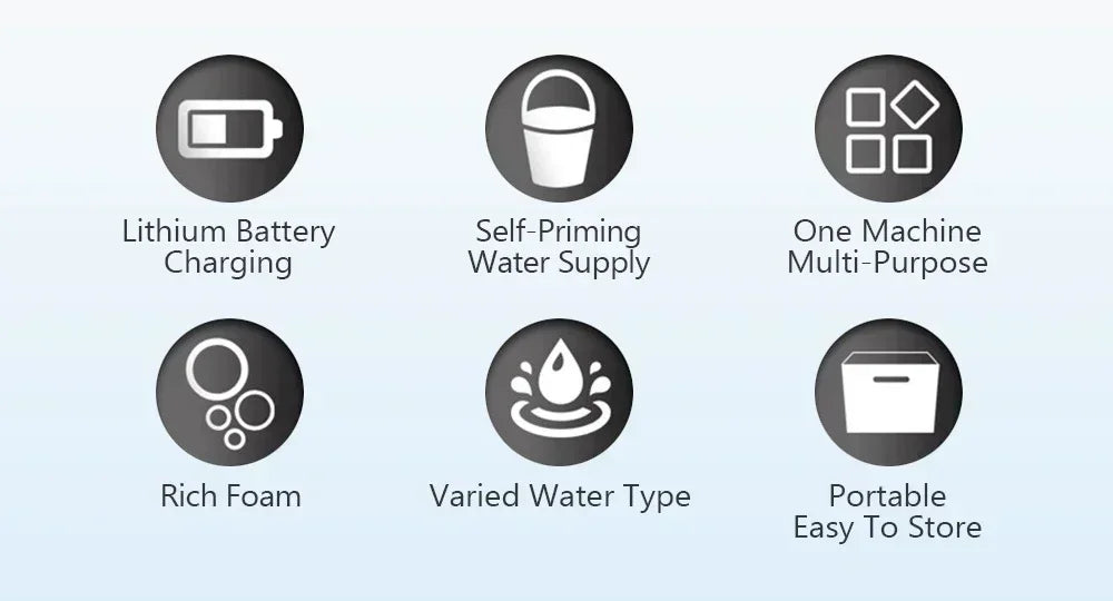 Descubre la solución definitiva para la limpieza en exteriores con la Hidrolavadora Pulverizadora Inalámbrica de 150W. Diseñada para ofrecerte máxima versatilidad y potencia, esta hidrolavadora ligera y portátil es ideal para el uso diario en tareas de limpieza doméstica y profesional.