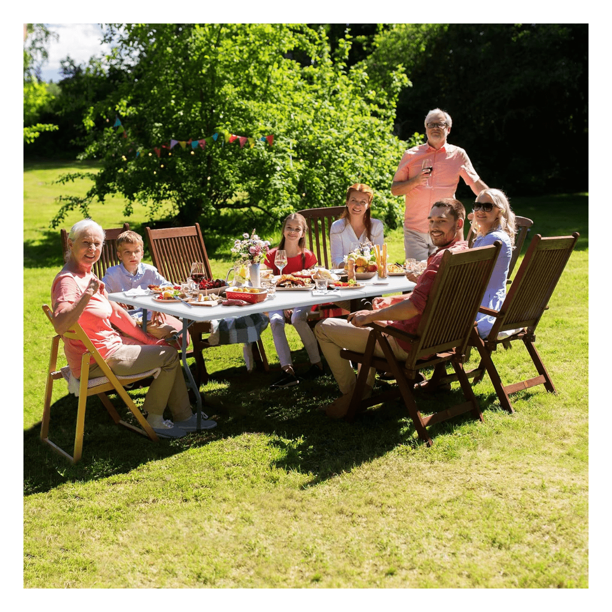 - Diseño Simple: Ofrece un amplio espacio para reuniones de hasta 10 adultos. Su diseño elegante se adapta a cualquier entorno, desde picnics al aire libre hasta reuniones en el hogar, proporcionando el lugar perfecto para juegos, manualidades o simplemente compartir una comida.