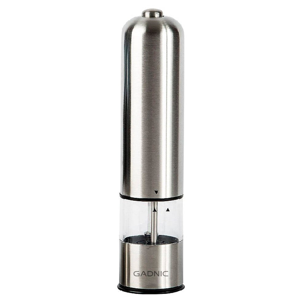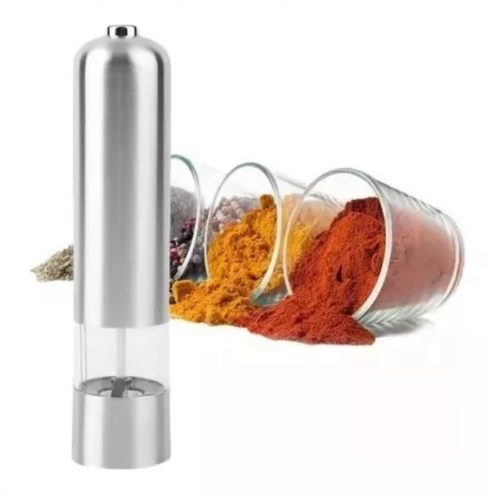 Este bonito molinillo eléctrico de acero inoxidable para especias le facilitará la elaboración de sus platos. Mecanismo de molido de cerámica ajustable y luz de funcionamiento en el interior de la base. Sirve tanta para Pimienta entera, Sal de Mar, y Múltiples Especies