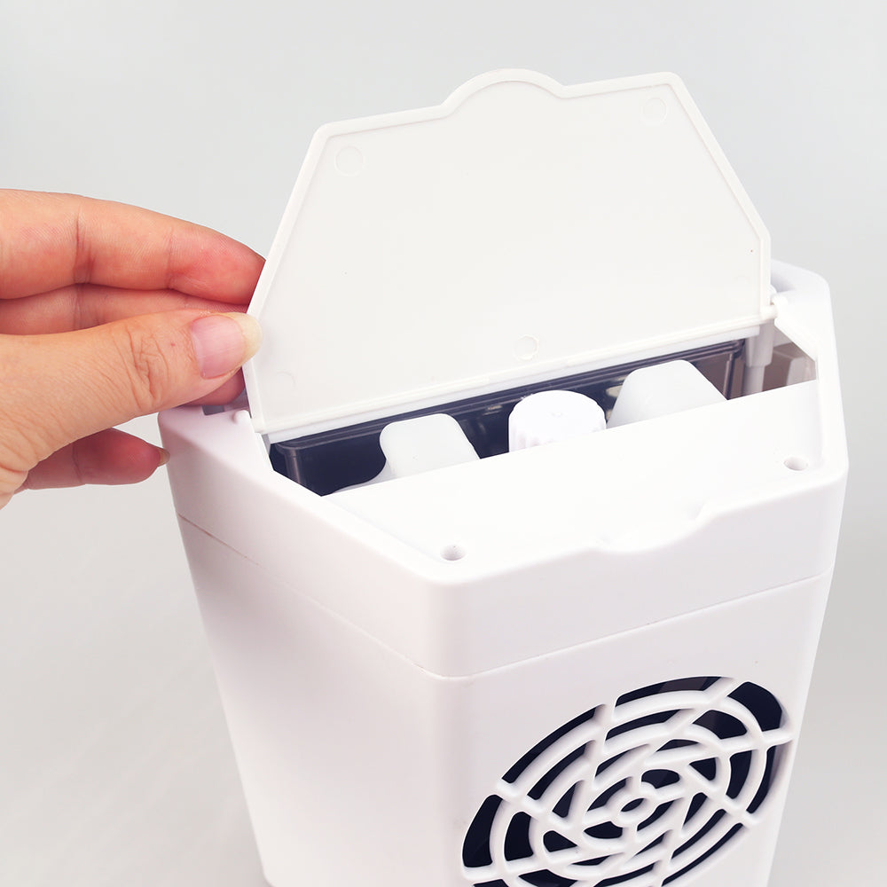 - Contenido: Equipo Ventilador + Manual + Embudo + Contenedor para agua/hielo + Cable USB-C